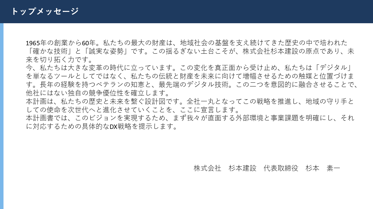 株式会社杉本建設 トップページ会社概要事業内容採用情報お問い合わせ