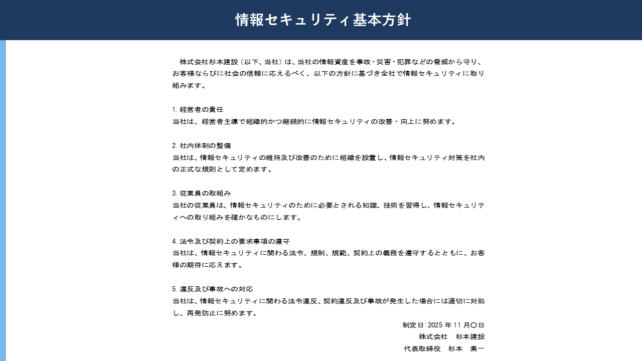 株式会社杉本建設 トップページ会社概要事業内容採用情報お問い合わせ